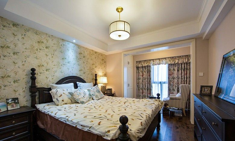 美式家居的臥室布置較為溫馨,作為主人的私密空間,主要以功能性以及實(shí)用舒適為斟酌的重點(diǎn),多用溫馨柔軟的成套布藝來點(diǎn)綴,同時(shí)在軟裝以及用色上無(wú)比統(tǒng)1。