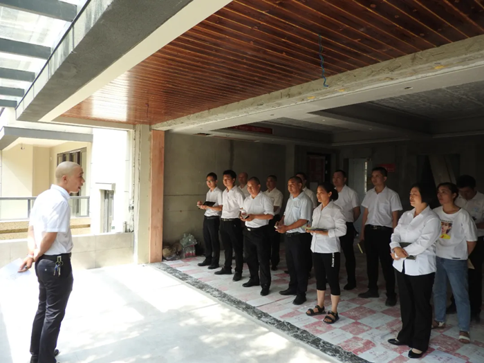 召集片區部分項目經理,舉行了一場關于工地形象與安全及泥作、木作工藝培訓會。