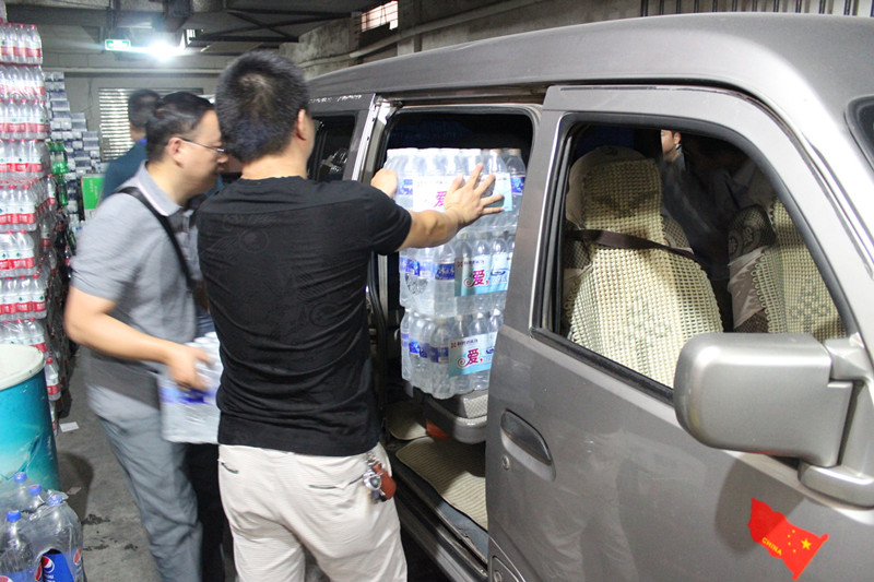 臺階再高,天氣再熱,但所有人的腳步依舊堅定,心懷員工,都想快速地把水送到一線員工手中以解干渴。