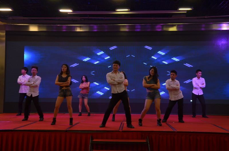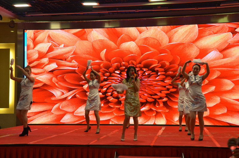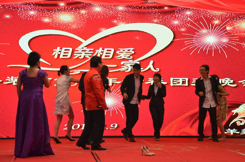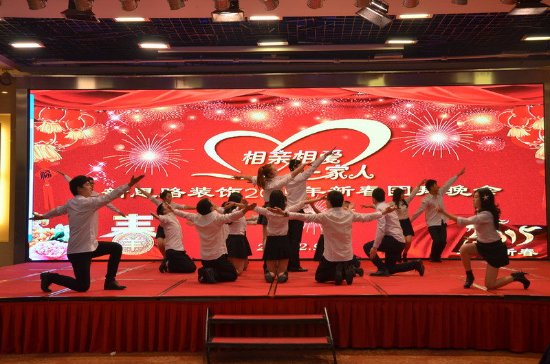接下來的節目演出立刻讓晚會現場成為歡樂的殿堂。歌曲、舞蹈、小品、合唱多種節目形式,精彩紛呈,所有節目均為公司員工自編、自導、自演,充分反映出新思路裝飾生動而富有內涵的企業文化。繽彩紛呈、風格各異的十幾個節目贏得觀眾滿堂喝彩,充分展現出新思路家人多才多藝、能歌善舞的一面。熱鬧喜慶的《拜新年》作為開場第一個節目閃亮登場,歡快的舞蹈、喜慶的旋律、愉悅的氛圍感染著每一位在場的觀眾,為整場晚會點燃激情。活力奔放的串燒舞蹈《小蘋果》引起現場尖叫聲不斷;工程部家人帶來的歌曲《超越夢想》以大合唱的形式唱響了新思路人超越夢想、勇攀高峰的激情和心聲;性感柔美的歌伴舞《萬水千山總是情》更是引得場下“粉絲”陣陣尖叫。要說全場最閃亮的舞蹈,當屬才女徐藝丹帶來的獨舞《映山紅》,優美的舞姿訴說著無盡的情思,散發著醉人的芳香,看得人是如癡如醉。而江北店家人帶來的小品《招聘》延續去年的爆笑風格,幽默的臺詞,惟妙惟肖的模仿讓現場笑聲連連,掌聲不斷。還有南坪店家人表演的小品《新白娘子傳奇》、工程部家人帶來的情景劇《交房》、沙坪壩店家人帶來的對唱《有你有我》、江北店家人表演的相聲《回家》......家人們以業余的身份發揮出了專業演員的水平,把角色演繹得惟妙惟肖,讓人嘆為觀止。