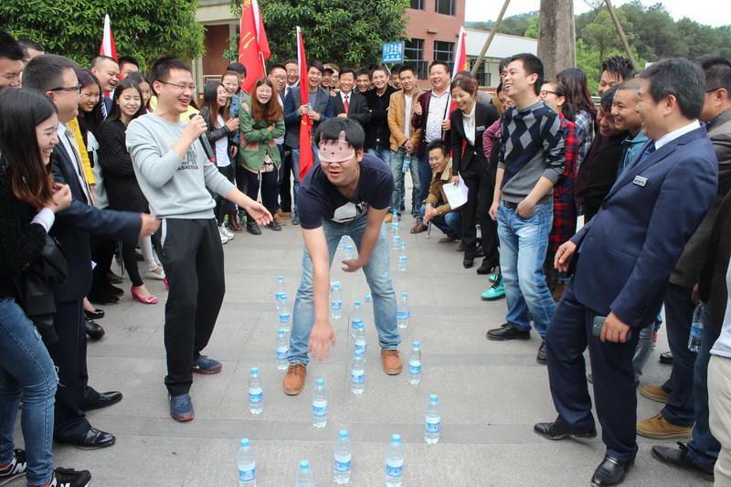 活動中,大家不分年齡大小、不論職位高低,全身心投入,體驗團隊活力,感受彼此友情,改善交際關系,融洽團隊合作精神。在“歌詞大接龍”游戲中,大家巧用團隊智慧,為了爭奪“麥王”頭銜而使出渾身解數。在隨后的“穿越地雷陣”、“團隊踢毽子”、“皮球大作戰”等游戲中,所有隊員在各自隊長的帶領下,相互信任、通力協作,充分發揮團隊合作的力量,為了最后的勝利而全力以赴。經過3個小時的激烈比拼,第2隊“神鋒隊”隊憑借出色的團隊協作能力獲得了最后的冠軍,每個隊員也都獲得了很有紀念意義的獎品,整個拓展活動圓滿結束。
