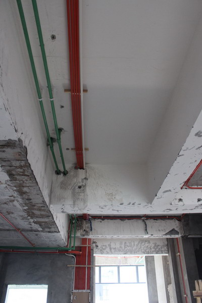 8月21日,在經歷一些小波折(主要是業主與雅居樂物業方面就頂樓花園施工問題發生了一些小糾紛,導致水電施工不太順暢)之后,潘老師的工地進入了水電驗收階段。小編也特地跑了趟工地,為大家帶來大量新鮮、詳實的水電照片。廢話不說了,上圖!