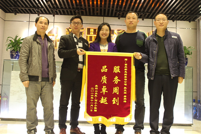 11月12日上午,美利山業(yè)主何老師及家人親臨南坪總部新思路裝飾為設(shè)計師敖元壩,工長唐科海送上一面印有:“服務(wù)周到,品質(zhì)卓越”的錦旗。這是對新思路裝飾品質(zhì)的認(rèn)可,這也正是我們所秉承:客戶滿意是我們唯一的工作標(biāo)準(zhǔn)”的裝修理念。