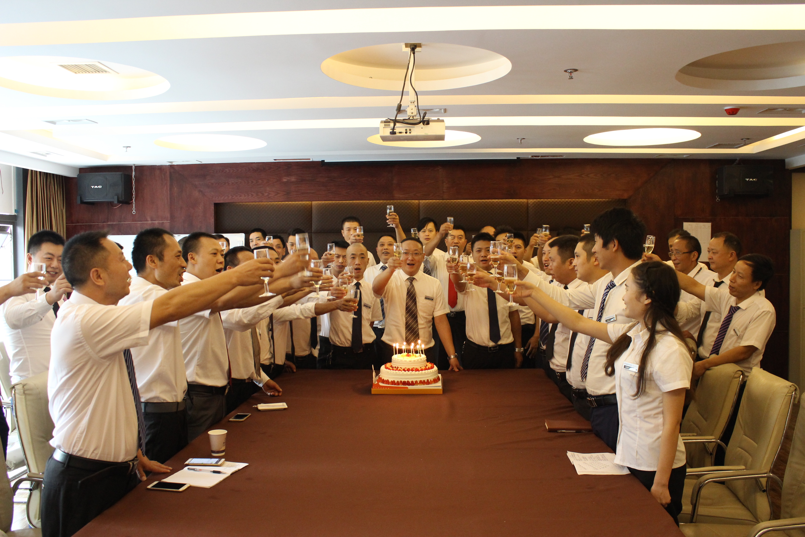 巴南店桑店長和南坪店楊店長和工程部文經理碰杯