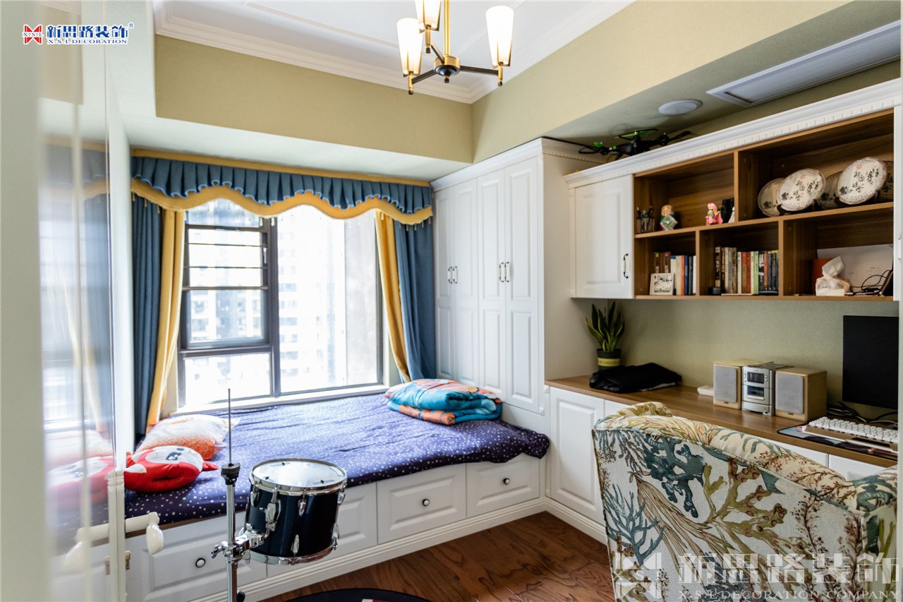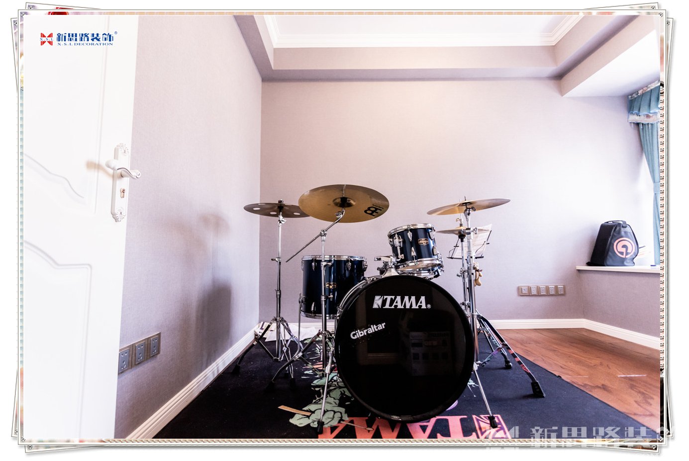 詢問客戶意見后,他們都認為沒必要對戶型有大的改動,我們便也沒有將戶型做出大改,只是把原本獨立的衣帽間并入主臥好方便換衣服,愛美的女主人對此很滿意。不過對于其中一個次臥設計時,因為家中常住人口只有他們三個,不用專門的客房,所以他們的兒子要求將屋子做成音樂練習室,滿足練習架子鼓的需求。