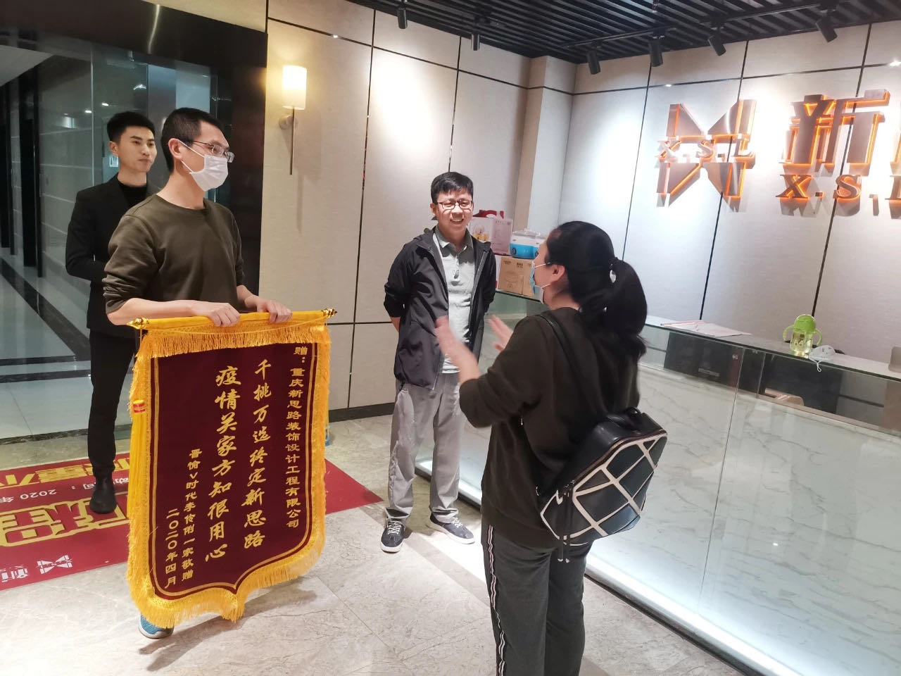 2020年4月12日,一個(gè)普通卻溫暖的周末。在這春暖花開、萬物復(fù)蘇之時(shí),新思路裝飾收到了自疫情解封開工后最好的禮物——兩面由晉愉v時(shí)代業(yè)主李女士及其家人送來的錦旗。