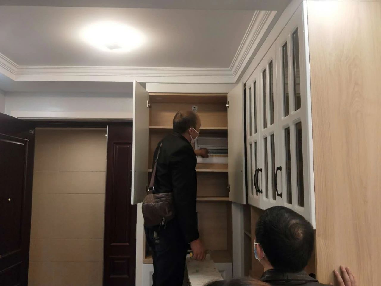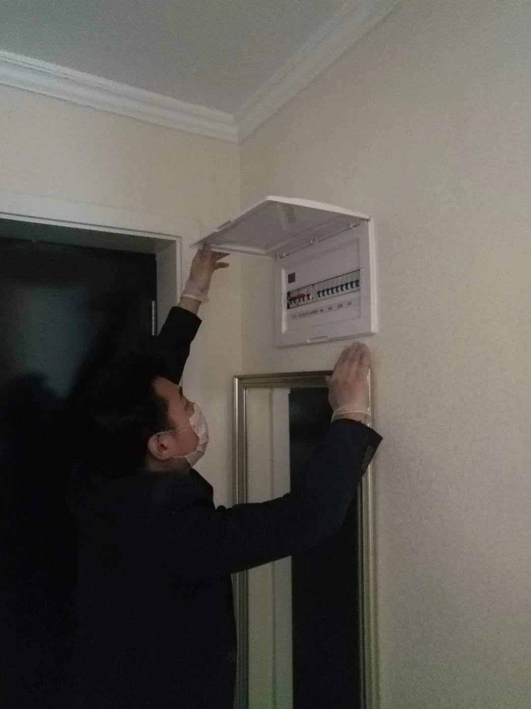 ▲工程部項(xiàng)目經(jīng)理在認(rèn)真排查線路與開關(guān)處