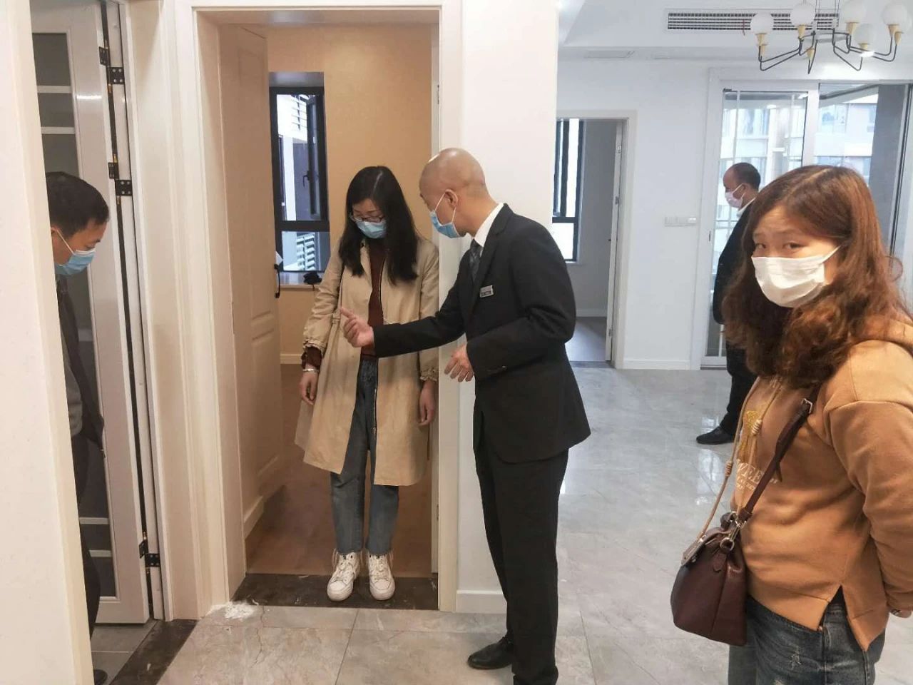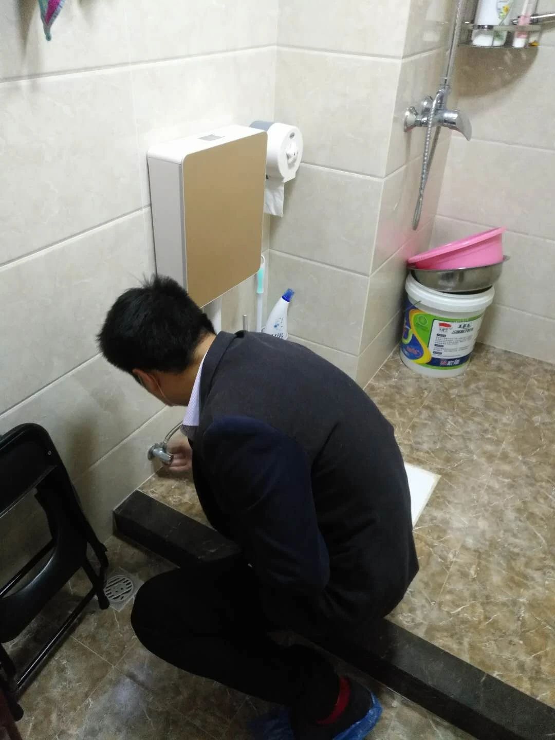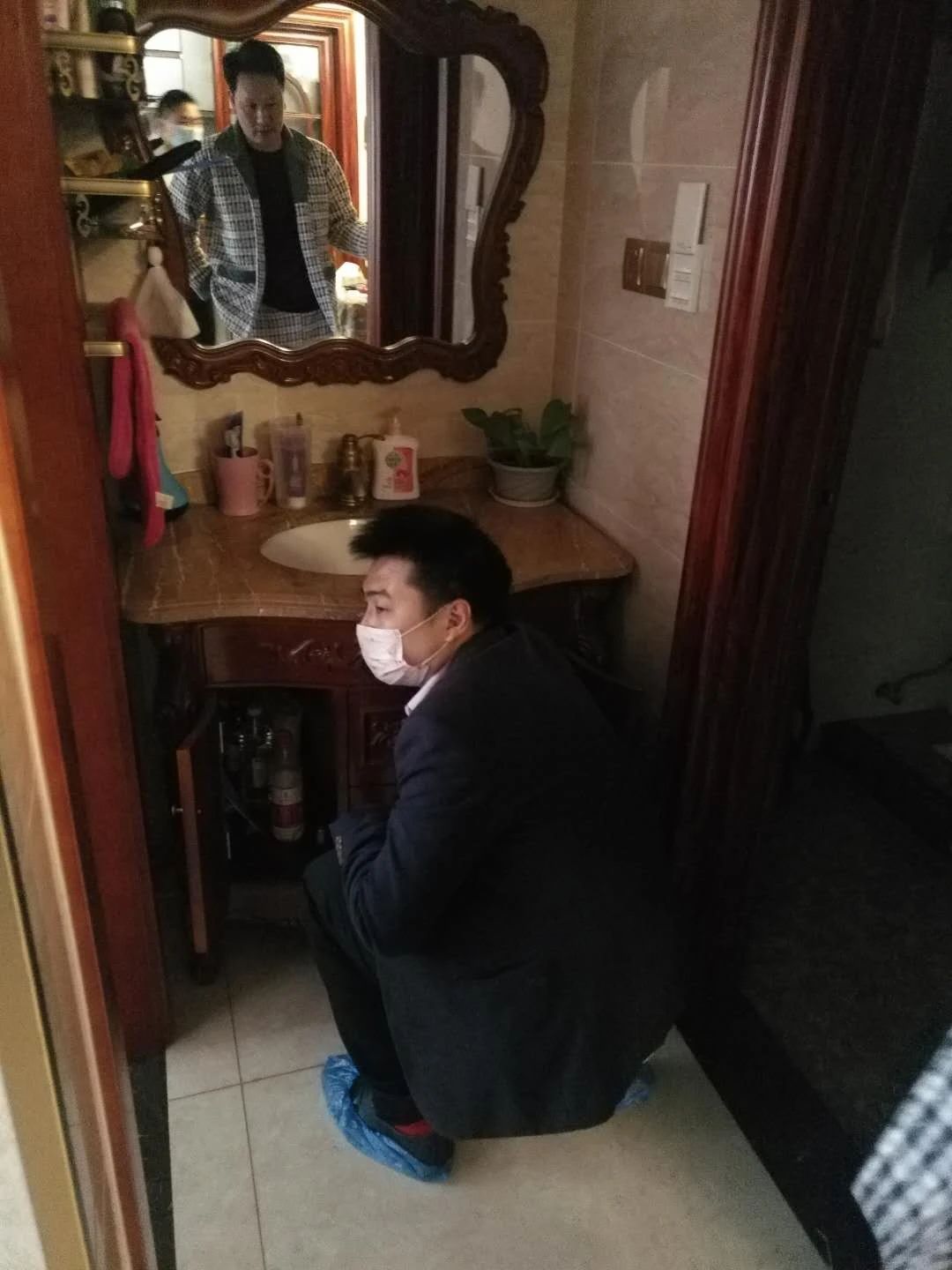 ▲工程部質(zhì)檢在檢查排水管道,給業(yè)主講解相關(guān)問題