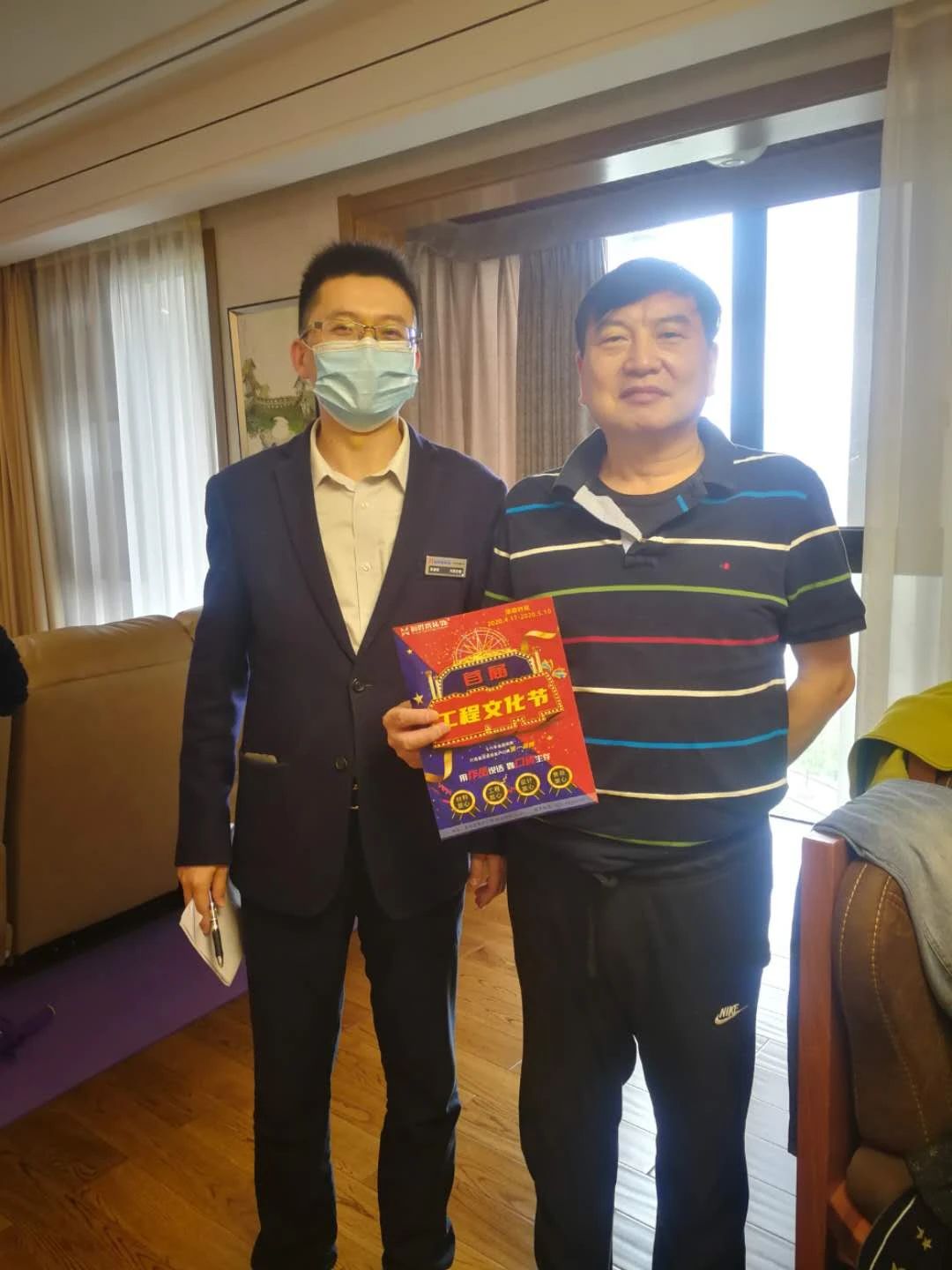 ▲工程部質(zhì)檢李明(左)、質(zhì)檢談代超(右)與片區(qū)經(jīng)理朱慧明帶上禮物與工具前去小區(qū)