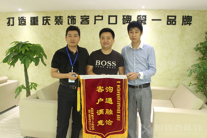 新思路裝飾自精心推出“放心工程”、“品質(zhì)工程”系統(tǒng)以來,讓廣大業(yè)主的裝修流程更加放心,更加有保障,同時也獲得了眾多業(yè)主的贊揚(yáng)和褒獎。自5月25日首創(chuàng)十方界的賀老師送來錦旗感謝之后,5月29日上午10點(diǎn),新思路裝飾南坪旗艦中心又迎來了一位特殊的客人—光宇錦鑫13石老師將一面寫著“溝通融合,客戶滿意”的錦旗送到了公司,以感謝新思路裝飾精湛的裝修品質(zhì)和貼心的裝修服務(wù)。