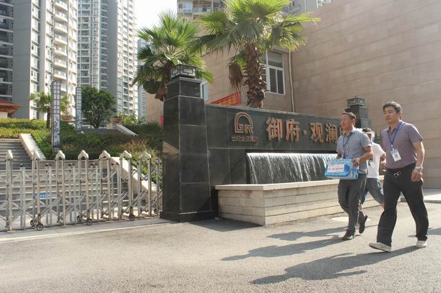 大家在小區(qū)大門口等候龍湖U城保安放行