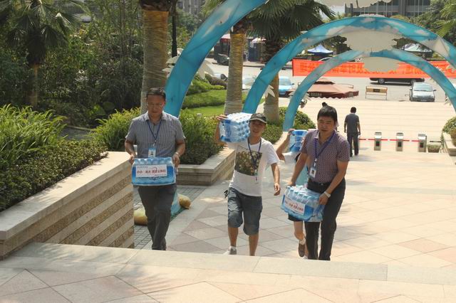 臺(tái)階再高,天氣再熱,但所有人的腳步依舊堅(jiān)定,心懷員工,都想快速地把水送到一線員工手中以解干渴