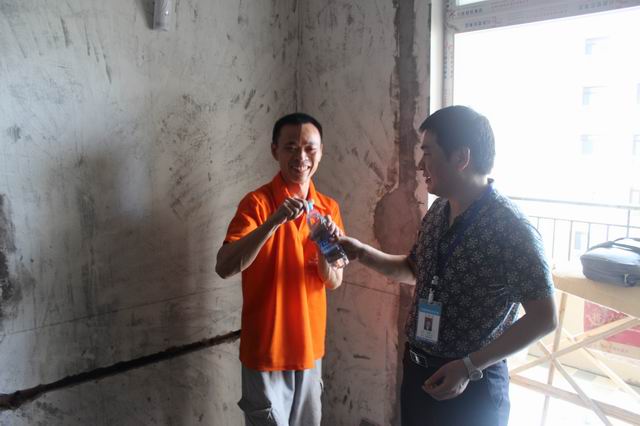 公司領(lǐng)導(dǎo)的關(guān)懷及送清涼活動(dòng),送到了員工的心坎上,暖在了員工的心田里。“公司領(lǐng)導(dǎo)冒著高溫給我們送來清涼解暑的礦泉水,就是對(duì)我們最真摯的關(guān)心啊!”,“感謝公司對(duì)我們的關(guān)懷和慰問,我們?cè)倏嘣倮郏囊彩翘鸬模窀昧耍蓜乓哺懔耍?rdquo;……工人師傅們用最樸實(shí)真摯的話語(yǔ)表達(dá)著對(duì)公司的感謝之情。而正好碰到公司送水的一些業(yè)主,也對(duì)公司領(lǐng)導(dǎo)冒著高溫給一線工人送水的行為給予了高度贊揚(yáng)。金源御府8棟27-3的李老師就表?yè)P(yáng)說:“公司領(lǐng)導(dǎo)頂著烈日,親自給一線工人送水,新思路裝飾這點(diǎn)做的很好很到位,衷心祝愿新思路裝飾的明天更加美好”。而麓山別苑20棟2單元1—2的陳老師也稱贊道:“這么熱的天,新思路的領(lǐng)導(dǎo)們能到工地慰問工人,說明新思路裝飾是一家非常有管理,極具人性化的企業(yè),相信新思路今后的發(fā)展會(huì)越來越好,道路會(huì)越走越寬!”
