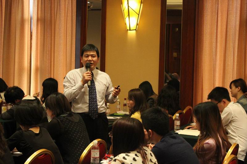 培訓(xùn)中張總?cè)橥度耄钫Z不斷。