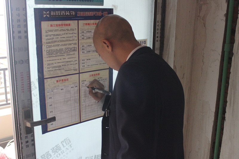 新思路裝飾一直把工程質量視作企業的命脈和根基,通過不間斷、不定期、嚴格的工地巡查,強化規范施工,嚴格把控工程質量,做出新思路裝飾自己的行業樣板工程、精品工程,來回報對公司無比信賴的客戶。工地巡查還將繼續,歡迎廣大業主朋友參觀工地……
