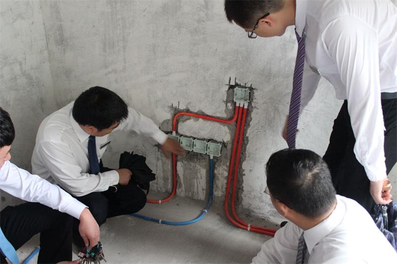 張總正在向大家詳細(xì)講解墻面開(kāi)槽工藝標(biāo)準(zhǔn)