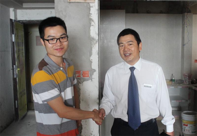 業(yè)主高興地同張總握手,并稱(chēng)贊新思路工地做得確實(shí)好