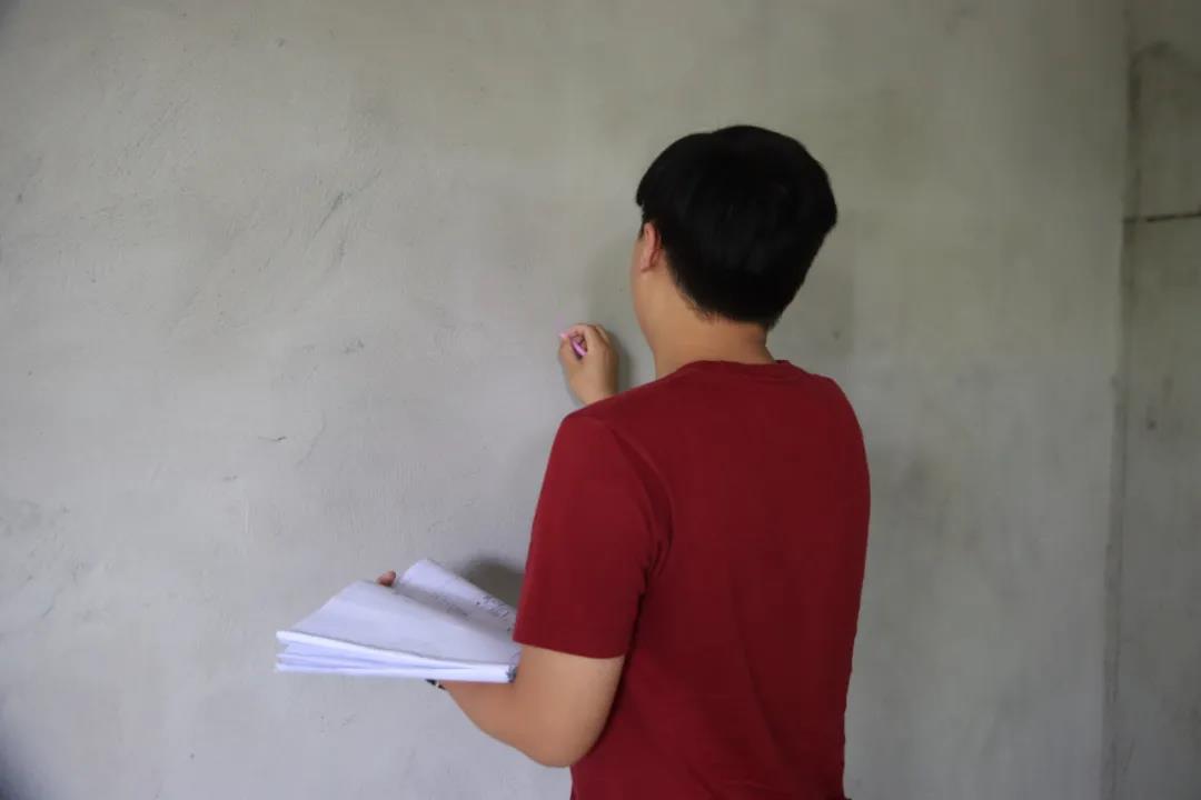這個工地才開工不久,關于設計上的細節有很多地方也還沒有完全定下來,準備隨著客戶家庭的實際情況,做出最適合客戶一家人的設計方案。設計師戴杰在查看工地時,也再次對照圖紙和現場實際情況,仔細思考設計的多種可能性。