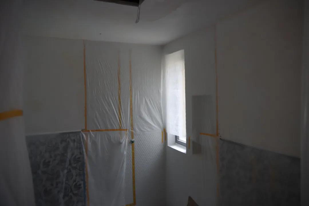 第三個工地正在硬裝進行中。這套案例設計上的巧思和花樣比較多,類似浮雕的花紋已經做好造型,等待燈具的安裝;衛生間的墻面也完成了,如同馬賽克的六邊形花紋拼貼低調中透露出一絲藝術性,拱門般的柜架設計還帶來不少別樣風情。相信在不久之后,這里會是客戶溫暖而美麗的家。