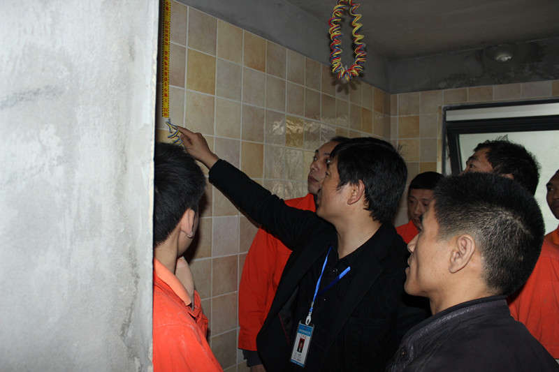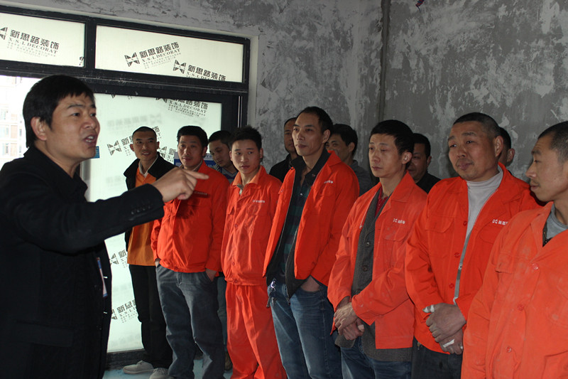 此次培訓由具有二十多年施工經驗的張總親自主持。首先,張總以提問的形式宣講了公司的基本信息和企業文化,同工人們進行了熱烈互動,對于回答正確的工人,當場給予現金獎勵。張總強調,作為新思路裝飾的一員,牢記公司的一些基本信息不僅能加強對公司的了解,同時也是展現新思路員工職業素養和形象的新窗口。隨后張總又從泥水施工新工藝技術、工序流程、規范標準、注意事項等方面對工人們進行了專業培訓。在培訓過程中,張總以現場在施工工地為實例,通過一些鮮活的事例,比如一根線,兩顆釘子,怎樣找水平;平整度、垂直度如何檢測;磚與磚接縫高低差標準;陰陽角角度差等,進行現場示范和講解。工人們也積極發言,提出一些獨到的觀點和見解,張總也熱情耐心地同他們交流討論,現場氣氛輕松而熱烈。