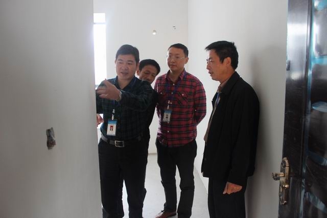 巡查小組成員在一起探討墻面陰陽角施工工藝
