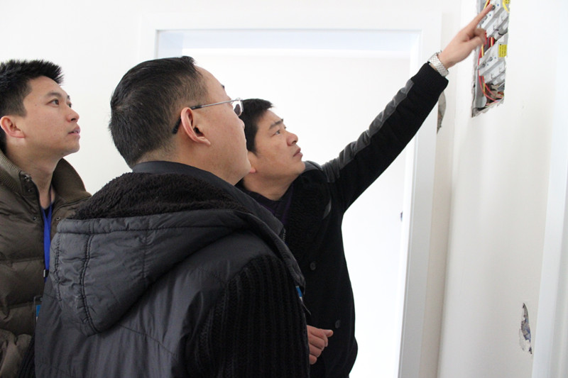 此次巡查是春節過后公司開展的首次大檢查,因此在檢查力度、范圍等方面都比以往更為細致嚴格。在巡查過程中,巡查小組分別從工地形象、施工進度、工藝工序、施工標準、工程監管等方面進行了全方位檢查。綜合來說,各工地質量總體令人滿意,水電線路排版清爽、泥作平整清潔、成品保護周全、安全標牌醒目、材料擺放整齊、施工現場整潔……處處顯示出新思路高品質的裝修水準。在檢查的同時,張總還以現場教學的方式,向新來質檢和項目經理詳細講解公司工地監管和施工規范標準,并一一解答他們提出的問題和疑問。此舉正是努力讓新人盡快融入新思路大家庭,同時促進他們快速提高工地管理能力,更好地為客戶服務。