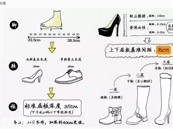 (1)女鞋長(zhǎng)度25cm,男鞋長(zhǎng)度34cm,所以鞋柜深度40cm最佳。