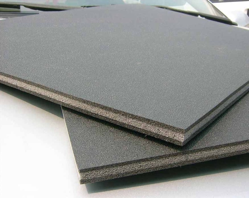 隔音氈由無味EPDM橡膠與十幾種有機礦物質按照一定比例精制而成,產品為黑色,環保無異味,對低頻和高頻聲音均有相當好的一種隔音材料,能有效地抑制各種振動的傳播,該材料厚度有1mm,2mm,3mm不等,經國家建材局檢測,計權隔音量Rw分別為23dB,27dB,30dB,材料的柔韌性也很好,可以隨便彎曲,任意剪彩,施工非常方便并且防火的隔音材料。