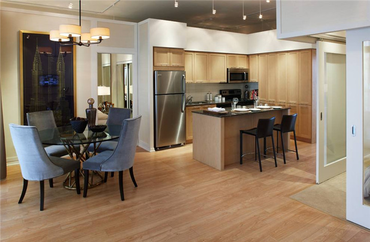 2:選用易潔材料。餐廳和客廳的墻面、地面應與廚房一樣選用容易清潔的材料,地面最好選用地磚、強化地板等材料,切忌鋪貼實木地板,因為實木地板容易受熱氣影響產生變形,縫隙間也容易沾上油污。